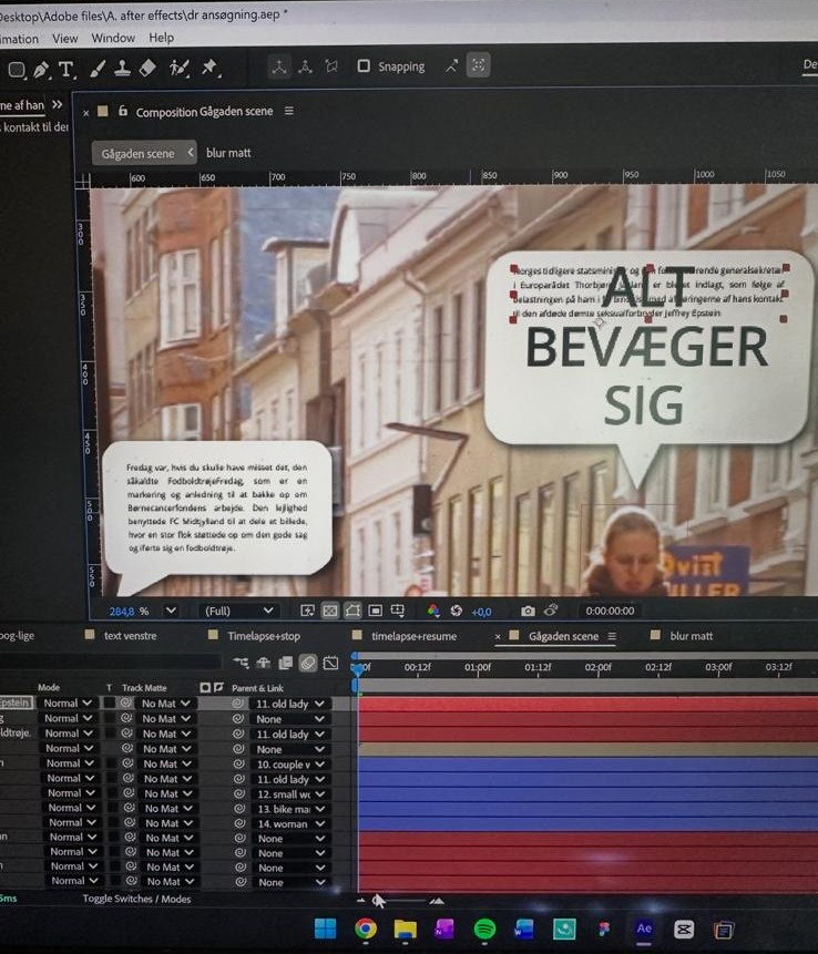 Med lyd, video og storyboard klar kunne arbejdet i Adobe After Effects begynde.