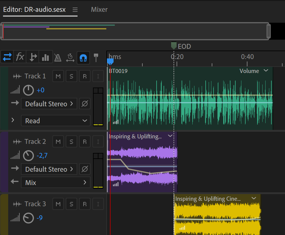 Det næste trin var at indtale voice overen. Efter optagelsen importerede jeg lydfilen i Adobe Audition, hvor jeg lavede en grundlæggende lydbehandling og justerede niveauer.